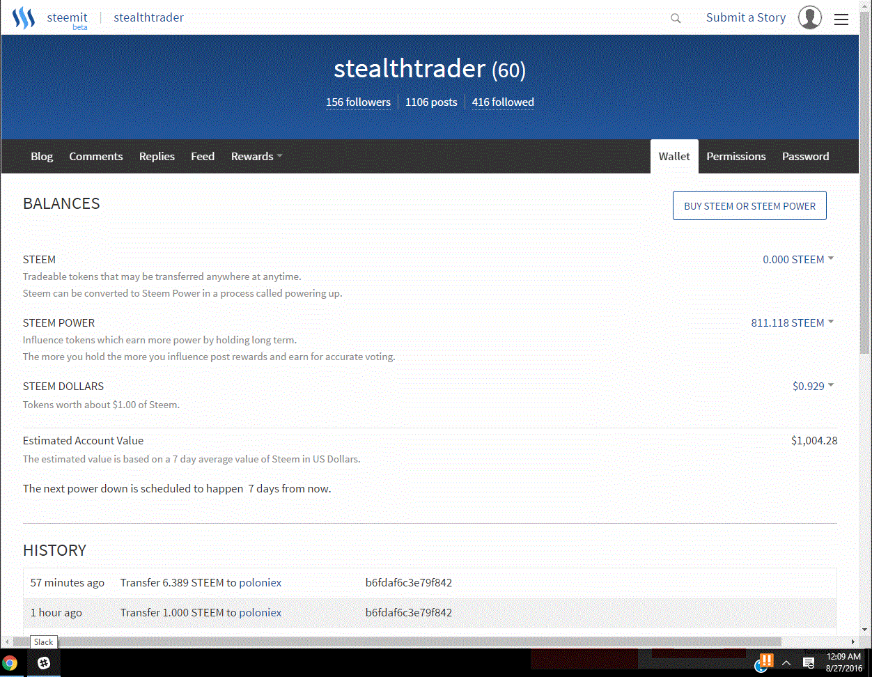 Obviously you can see that I transferred it immediately to Poloniex to avoid the penalty for holding STEEM on your Steemit wallet, but as you can see here..