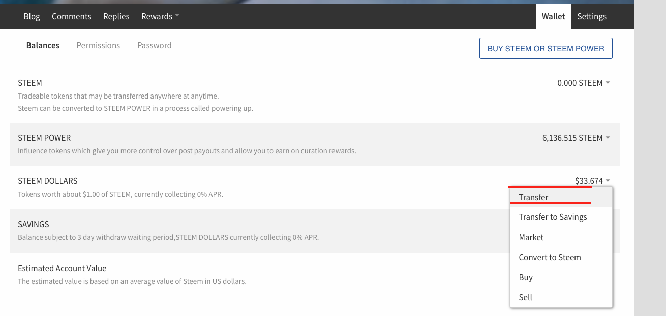 Step 2 - Click on the Steem dollars tab and click on transfer as shown! All requirements are lined with RED!