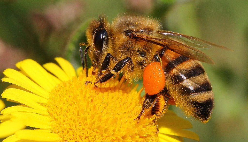 When bees fly from flower to flower, pollen grains stick to their bodies, which they leave in each flower who visit This process is called