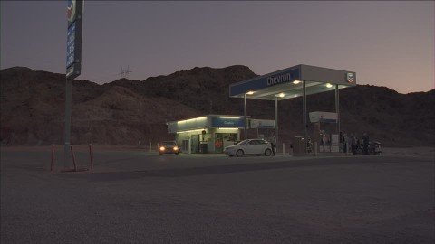 Esto ocurrió en una bomba de gasolina, gasolinera o simplemente estación de servicio en EEUU. Por allá es muy común que estas trabajen 24 horas, ademas de esto los locales que usualmente hay acá que venden algunas bebidas, cómoda y tal vez algún repuesto para su vehículo igualmente trabajan todo el día, esto gracias a trabajos por turno.
