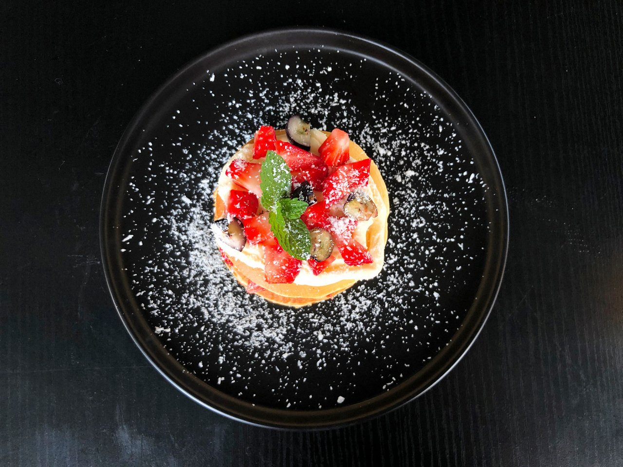 它带给我的第一印象是圣诞气息,大红色、乳酪色、蛋糕色、绿色,多种鲜艳的色彩相搭配,令人食欲大增。说说口感,松饼不软不硬刚刚好,搭配奶油和水果口感风味极佳。