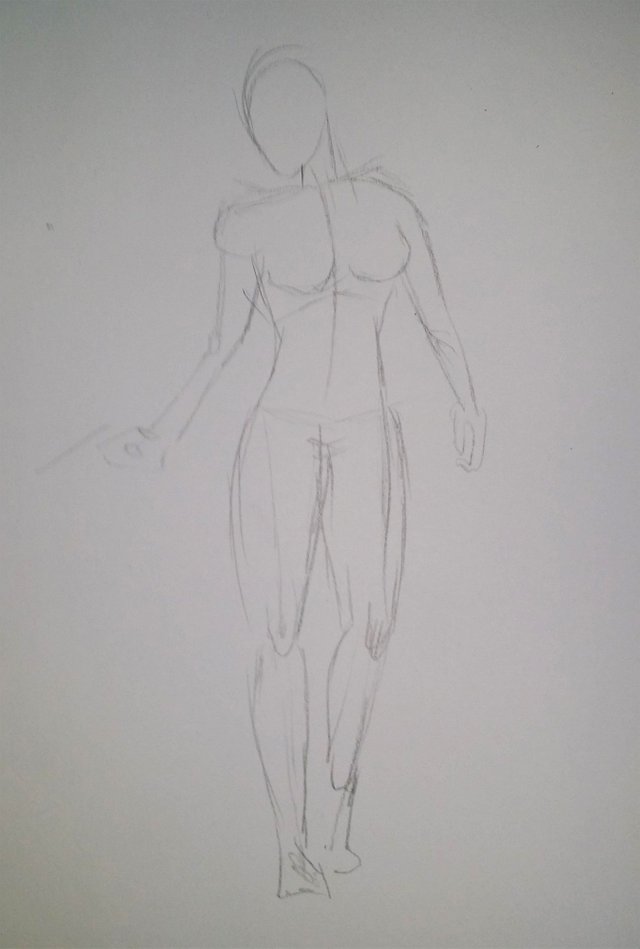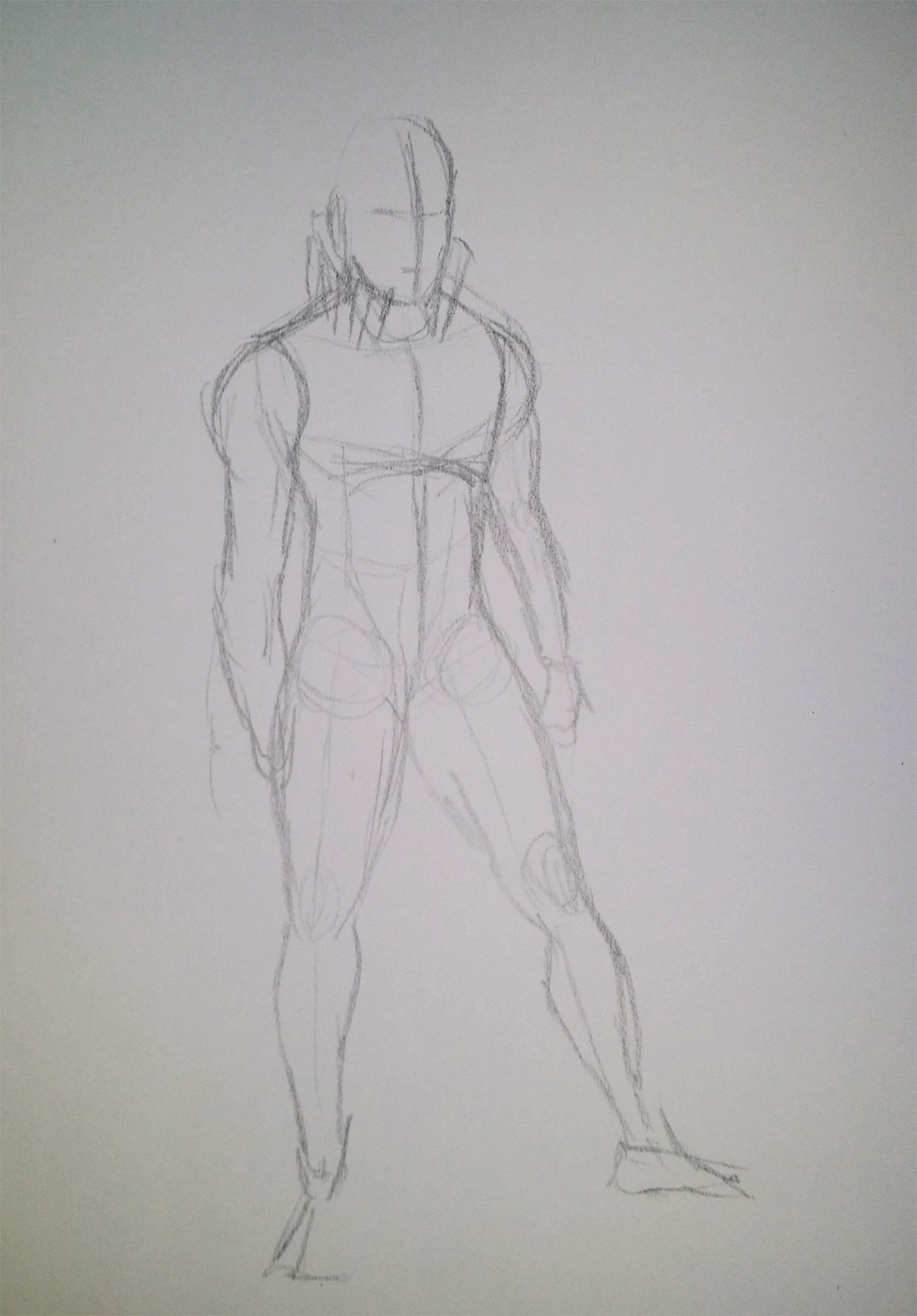 First, a very rough ski to find the right pose for the character and to determine the anatomical structure.