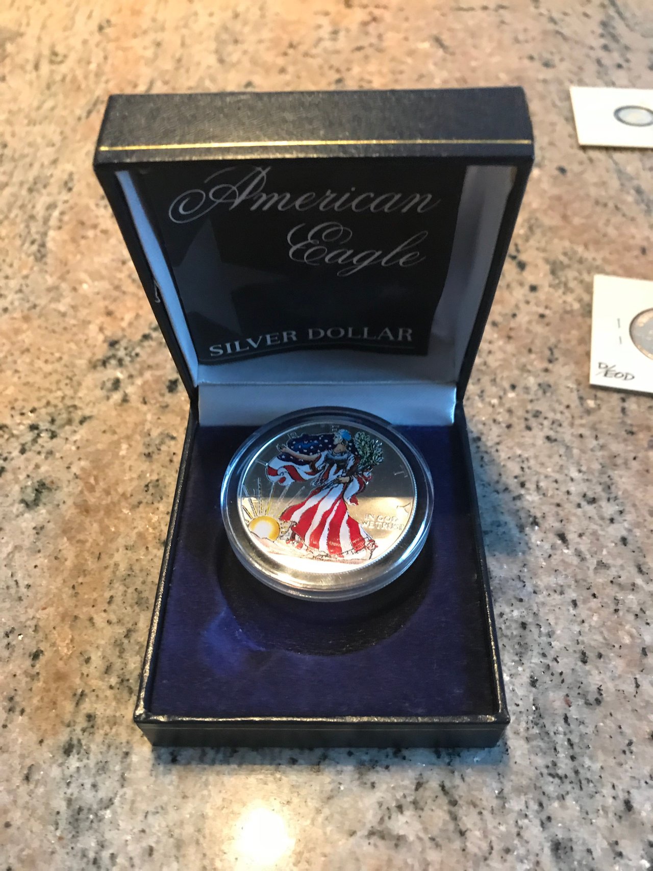 I managed to loot a few pieces for everyone as well. My son wanted this colorized Silver Eagle so I picked it up for him.