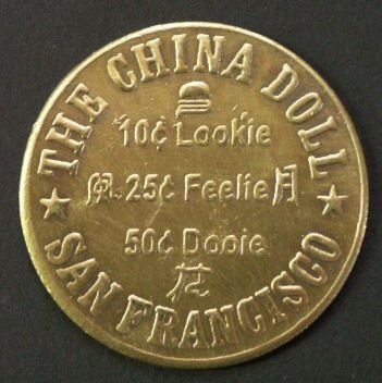 Token - A 'coin' that is struck and issued privately, and often given a value in trade or service, can often be used as an advertisement. (like a free beer, or car wash, bus ride, etc).