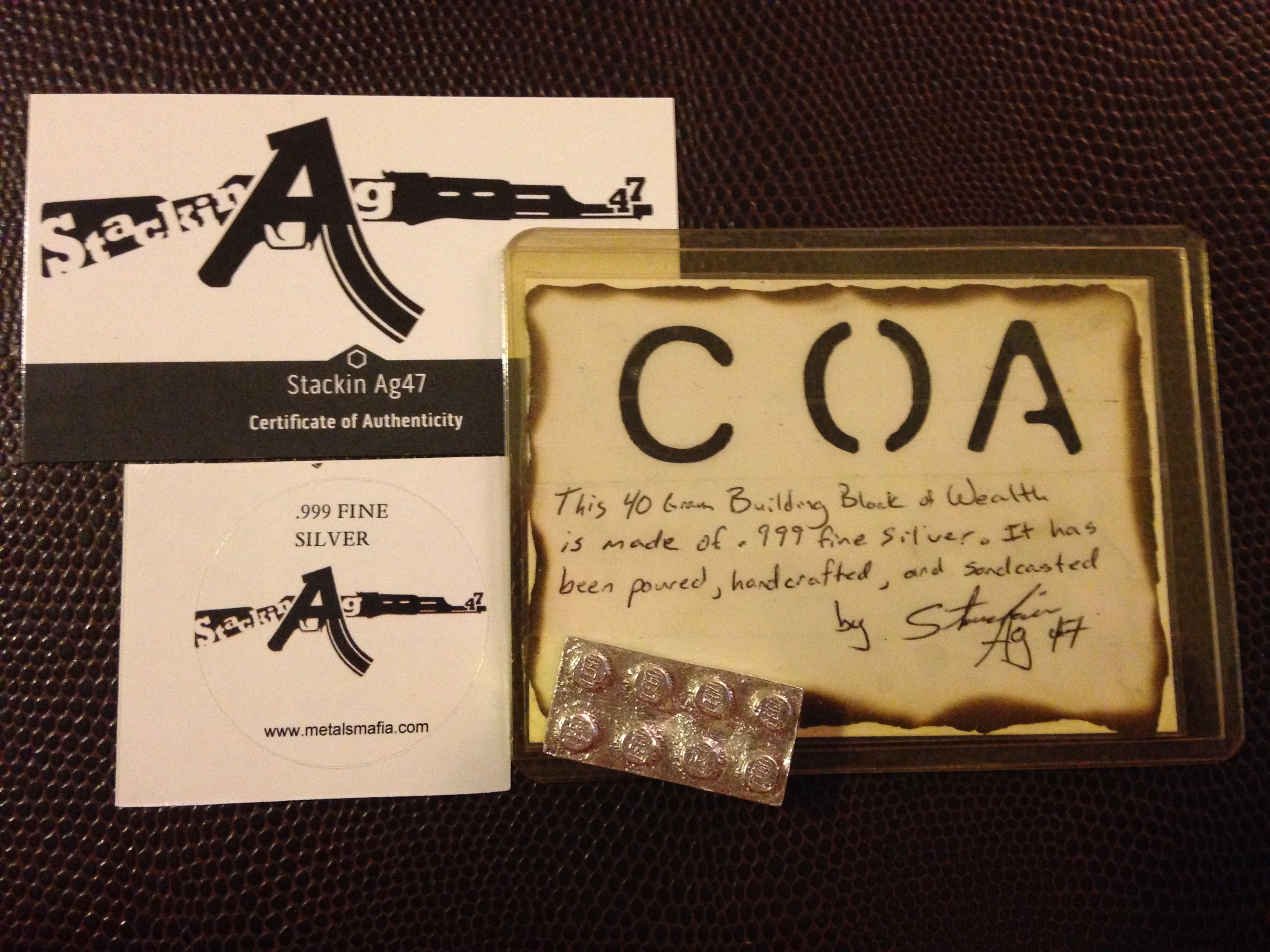 This 40 gram Building Block of Wealth is made of .999 fine silver. It has been poured, handcrafted, and sandcasted by @StackinAg47..