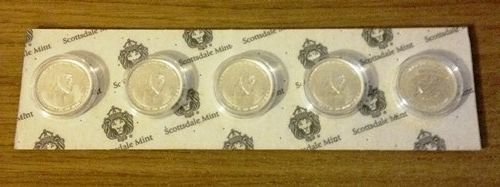 After much digging through peanuts, i found my replacement coins. This is them wrapped up with a 5oz Silver libertad to show the size.