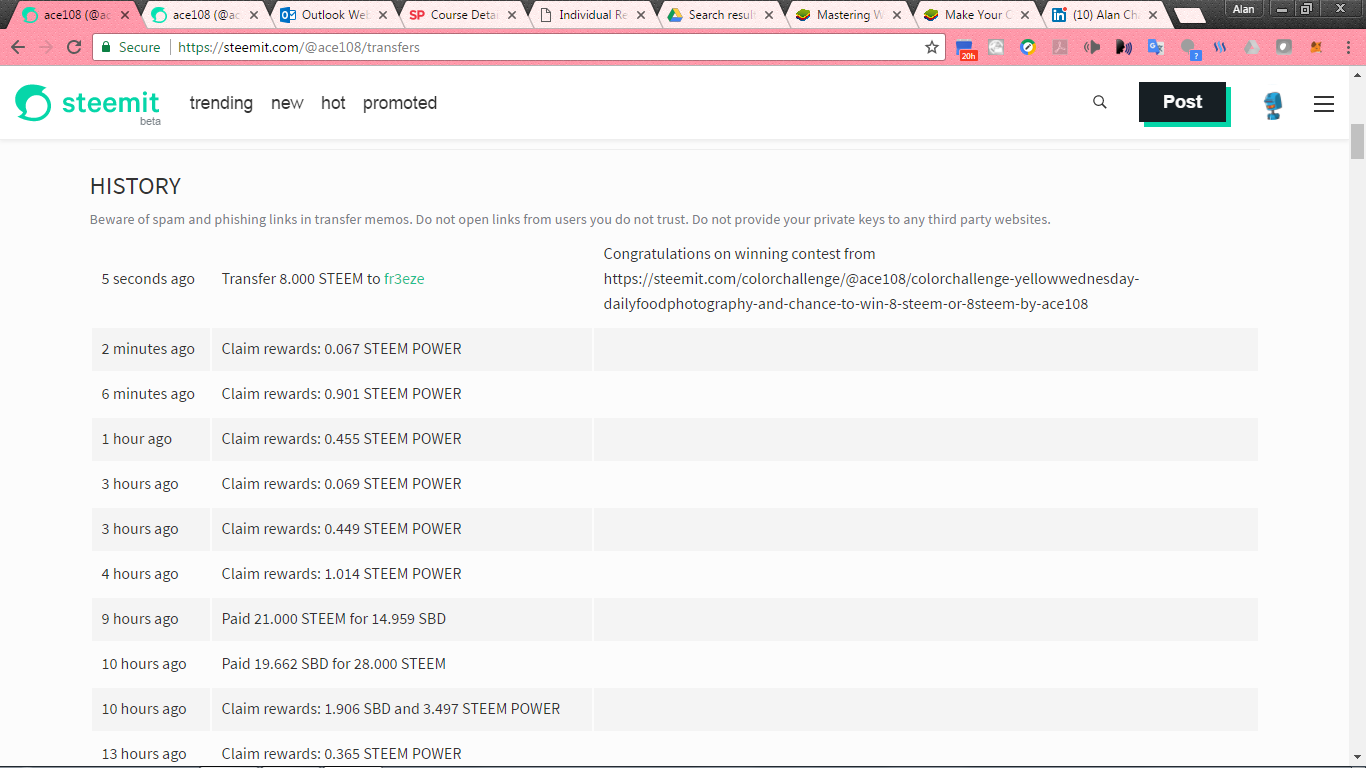 结果,赢家是 @fr3eze . 留言没说有否用resteem分享帖而我有懒得再写多个SQL但很快看出是没有。所以每附加多1 steem 奖励。