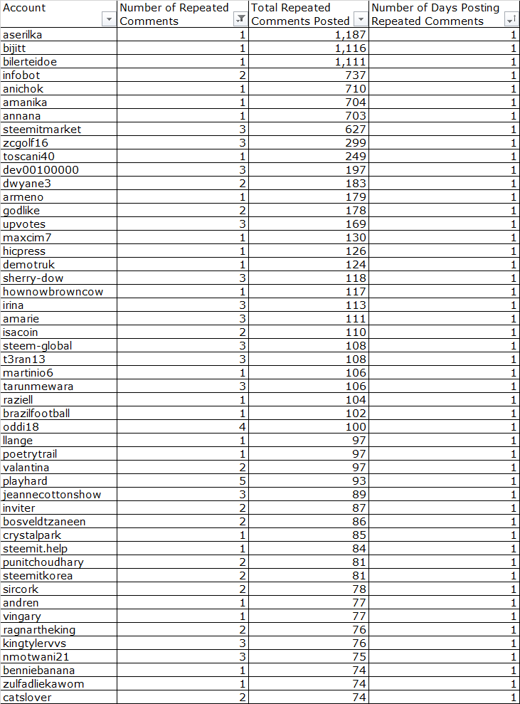 - 1,582 Accounts have at least 15 Repeated or Similar Posts in a 24 Hour Period (since the beginning of time on Steemit)