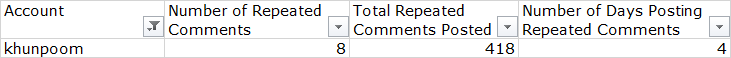 - 818 / 1,582 Accounts posted their 15+ Repeated or Similar Posts during only a single 24 hour period