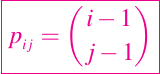 Si k es menor o igual a m, entonces especifica el número de formas en que los k elementos pueden ser seleccionados de un conjunto de m elementos. La entrada ij de la matriz que estamos configurando esta definida por