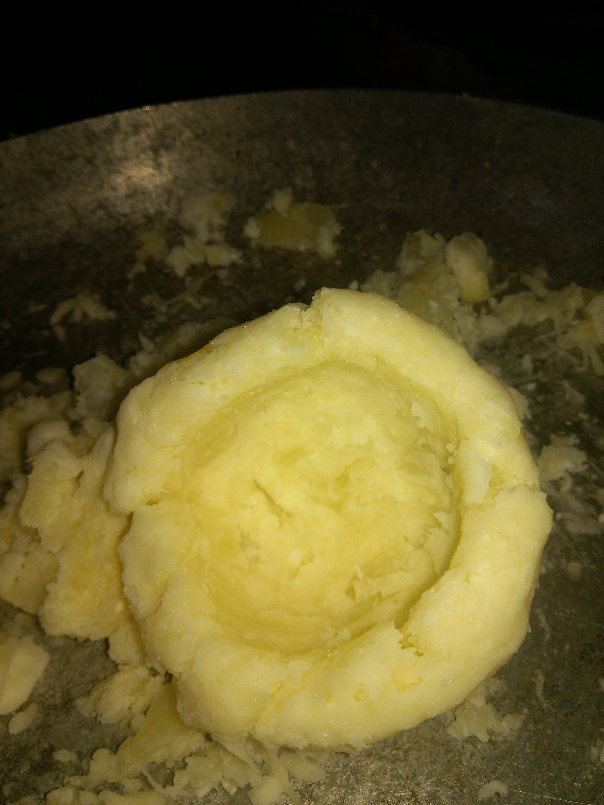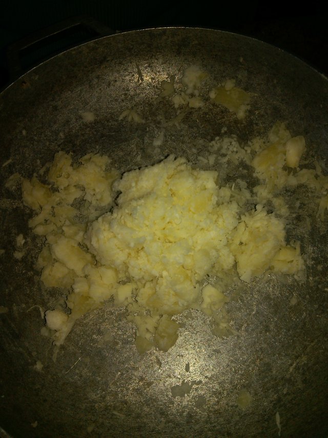 2 - After the cassava is cooked, we vote for the water and let it cool, grate it on the thinner side, then mix it and add a little salt and butter until a compacted mixture is left.