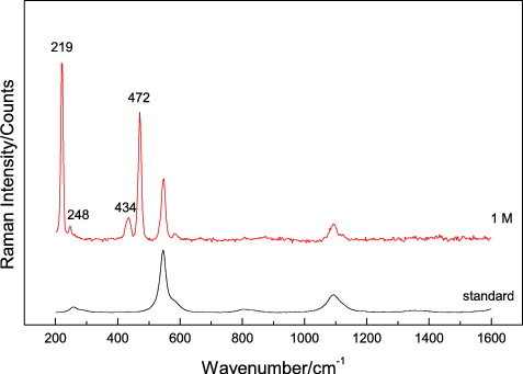 Raman spectrum of ultramarine blue compared with another characteristic spectrum.