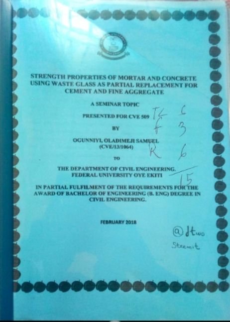 This is my final year project proposal which i made a presentation on in February, 2018 as an undergraduate of Civil engineering at Federal university Oye-Ekiti, Ekiti State, Nigeria.