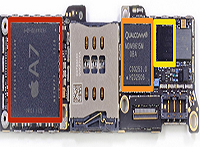 The Red Square is Apple's SOC called the “A7” and it was a legendary System-On-Chip. The SOC contains a lot of cool stuff, like dual core processors to run your iOS and also quad core GPUs to run all your games.