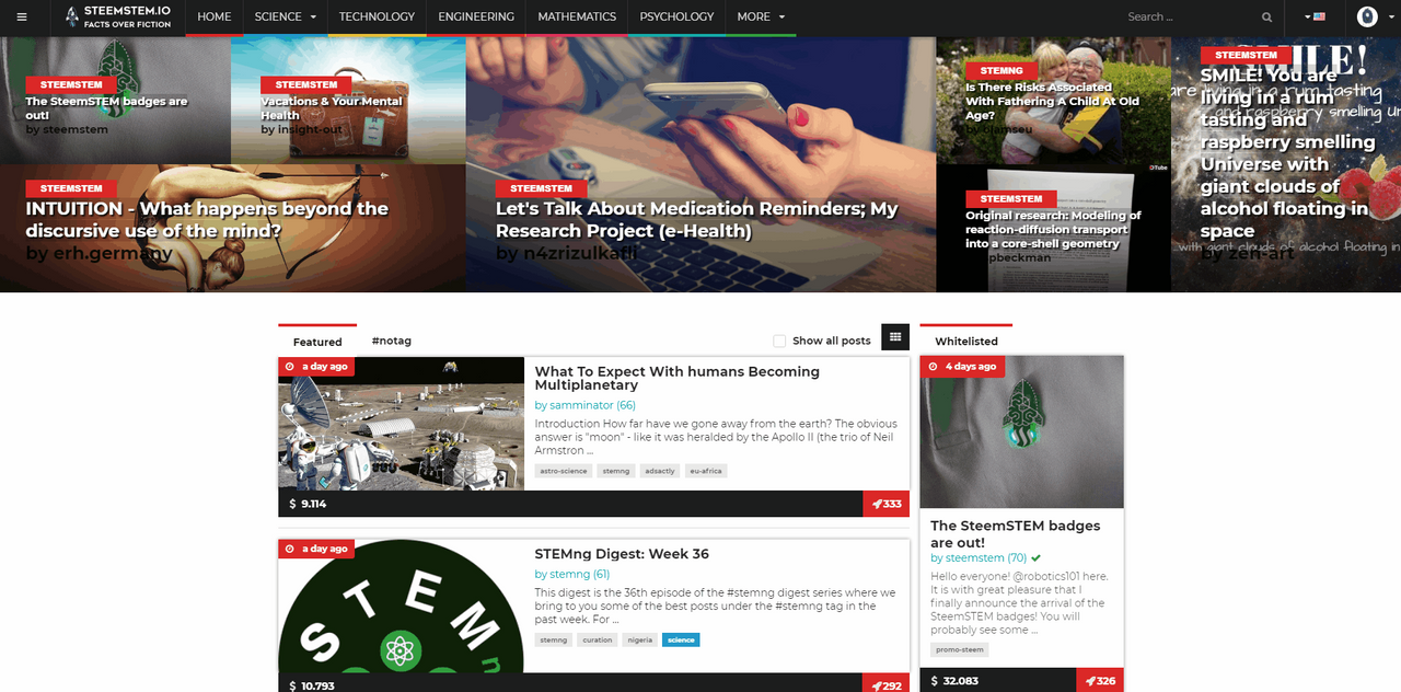 The steemSTEM platform is a network aiming for different activity to increment both the quality and the visitilibity of Science, Technology, Engineering and Mathematics (STEM) that is using Steem technology via posts on Steemit.