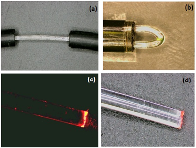 Modified a probe sensor is the important step in term of producing a better quality of intrinsic fibre sensor probe there are some technicalities employed earlier by many researchers namely, chemical etching[9], mechanical etching[5], and tapering[10]. This step has its own level of technical intricacy. In chemical etching process, while dipping polymer optical fibre into organic chemical solvent that’s react as an etchant liquid. The steps process to etch layer by layer the cladding surface must be employed properly to avoid fibre breakage inside chemical solvent. Acetone widely use as chemical etchant in many study of polymer optical fibre etching [11], the temperature and immersing time is the main thing that’s must be controlled precisely. In Mechanical etching sand paper and polishing film utilized to remove layer of cladding, this step must be done in low speed to possess uniform removal rate and scratch-free layer of polymer optical fiber. Producing tapered fiber using tapering machine was introduced formerly using fiber optic silica, this is done as alternative technique, because of difficulty in producing fiber taper from silica type, and chemical etching of silica using hydrofluoric acid that’s harm to human body.