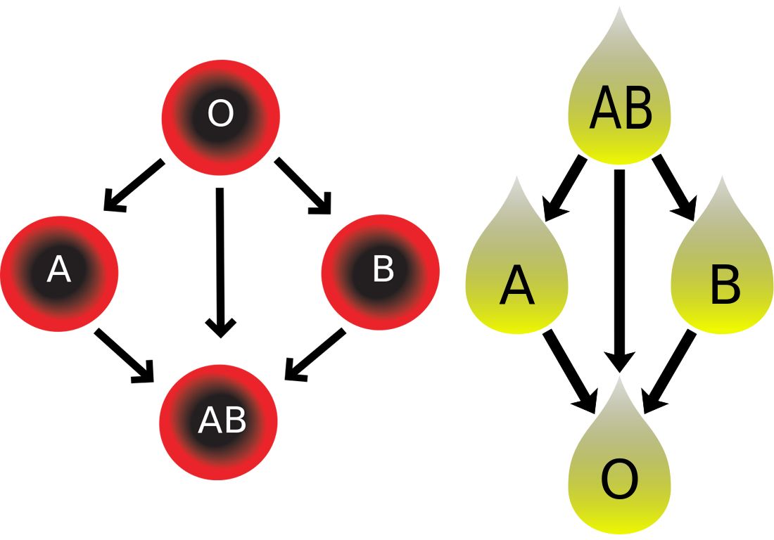 For the ABO system because of the natural abundant antibodies, things are slightly more complex.On one hand, blood type O is the universal donor because there are no antigens in the surface of red blood cells capable of interacting with antibodies and it accepts only blood type O, I call it Mother Teresa of the blood types.