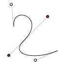 An example showing a curve. Control points are indicated in red and blue curved dots: