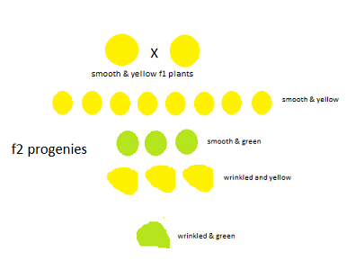 The scenario above is simply telling us one thing, that gene for each trait is inherited independently. The gene for skin colour is inherited independently from the gene for eye colour while both are also inherited independently of the gene for tallness. This assertion has been demonstrated by Mendel in one of his experiment using the popular pea plant. Why was he obsessed with this pea plant? I suppose he used the pea plant mainly because they are very easy to cultivate and have a short life cycle from germination to fruiting. Furthermore, the flowers of the pea plants are hermaphroditic making self-pollinating the pea plants an easy task. So, what did Mendel do? He performed a breeding experiment taking two traits into cognizance simultaneously - the shape and colour of the seeds of the pea plant. He took a pea plant that breeds true for smooth and yellow seededness and crossed it with the one the breeds true for wrinkled and green seededness. As expected from the law of segregation, all the F1 (first filial generation) plants produced smooth and yellow seeds, meaning the smoothness is dominant over wrinkledness and yellowness is dominant over greenness. The first generation plants were then allowed to self-mate to produce second-generation seeds. The result from the first generation selfing revealed a similar trend of segregation of genes or alleles. The offsprings appeared in the ratio 9:3:3:1 phenotypes along with the seed shape and colour. The outcome of the dihybrid cross can be predicted using a punnet square to show the outcomes based on probabilities. About 9 of the plants had smooth and yellow seeds, 3 had smooth and green seeds, 3 had wrinkled and yellow seeds while only 1 had wrinkled and yellow seeds. If analyzed independently, the ratio of smooth seeds to wrinkled seeds gave 3:1 while yellow to green colour gave the same ratio.The outcome from this breeding of experiment led to the formulation of the second law of Mendelian inheritance, also known as the law of independent assortment of genes. Simply put, Mendel postulated that characters are inherited independently of each other. Genes were postulated to be located on chromosomes and each one is inherited without the interference of another.