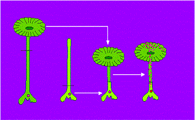 In order to further elucidate the importance of nucleus in heredity, an experiment using a single-celled alga Acetabularia offer excellent proof. Acetabularia wettsteinii and Acetabularia mediterranea differ in their fruiting bodies, that is the cap. By interchange of their nuclei through microsurgery or by grafting a decapped stem of one species to the nucleate base of another species. It was demonstrated that the nucleus determines the type of fruiting body produced. This experiment effectively concluded that hereditary factors reside in the nucleus of the cell and not in the cytoplasm.