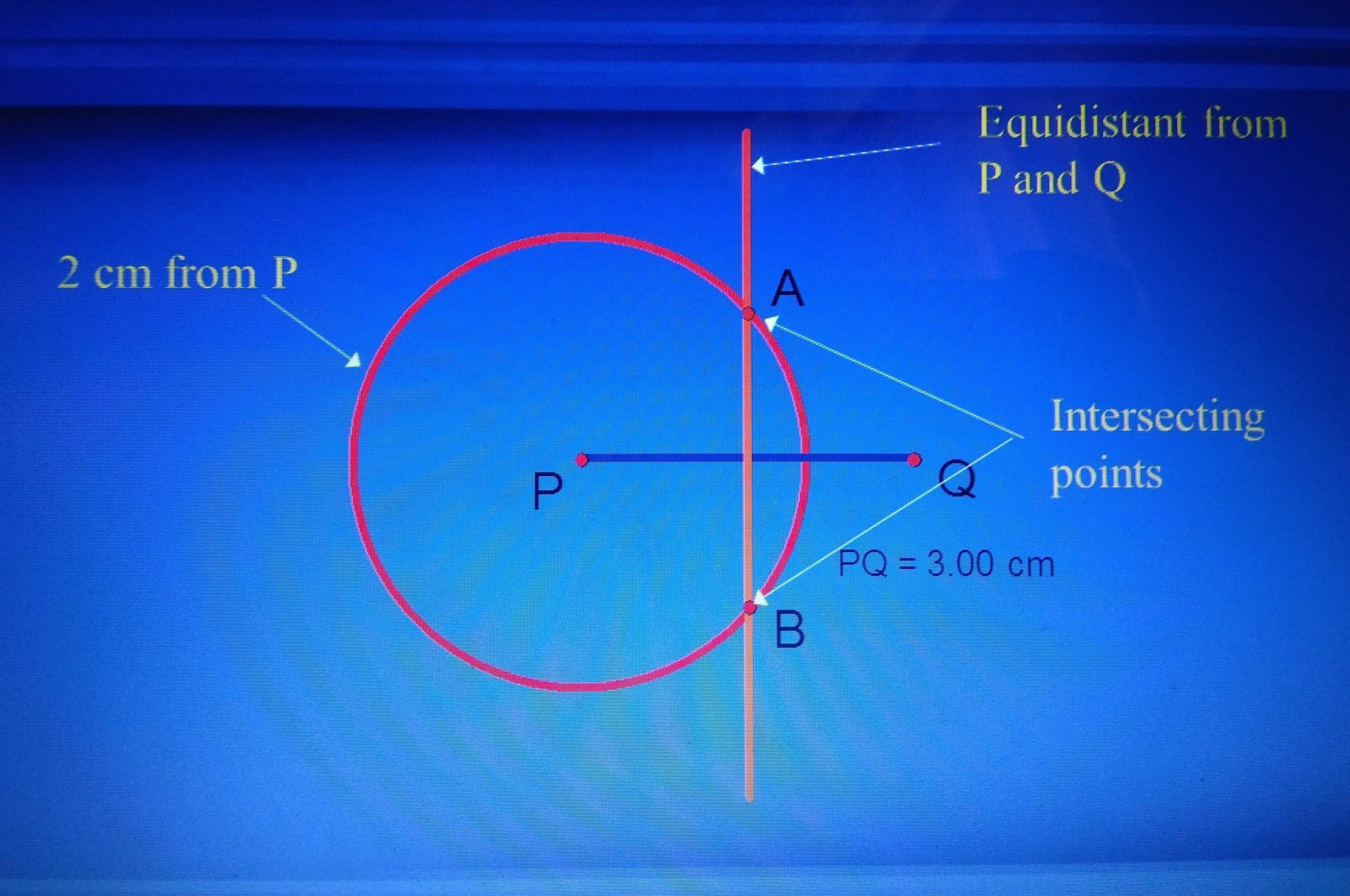 PQ is straight line of length 3 cm. Mark the points A and B that are 2 cm from P and equidistant from P and Q.