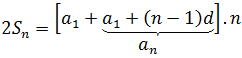 Using the formula of the general term again, we finally get the formula for the sum of the first n terms of an arithmetic progression: