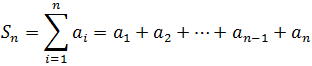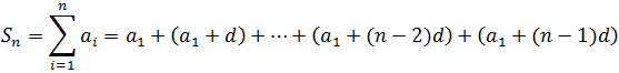 The sum of the first n terms of an arithmetic progression is written, using the sigma notation for the summation, as: