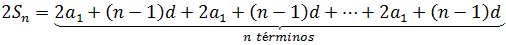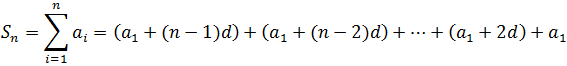 For a large number of terms, calculating such a sum is somewhat tedious, as it seemed to the child Gauss (read the anecdote below), but an equation can be obtained that speeds up such calculation (obtained by the child Gauss for the case of the progression of positive integers, although there is evidence that such formula "is known, at least, since the eighth century" [2]), rewriting the formula of the sum as follows: