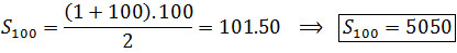 According to some of the versions compiled by Hayes, the child Gauss realized that the sum of the first and last term is 101 (1 + 100), that of the second and the penultimate is 101 (2 + 99), and that the sum of the equidistant terms of the sequence are all 101, so it had 50 addends equal to 101, with the result requested the product 101.50 = 5050. [3][4]