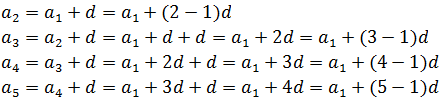Generalizing, you get the formula of the nth or general term of an arithmetic progression: