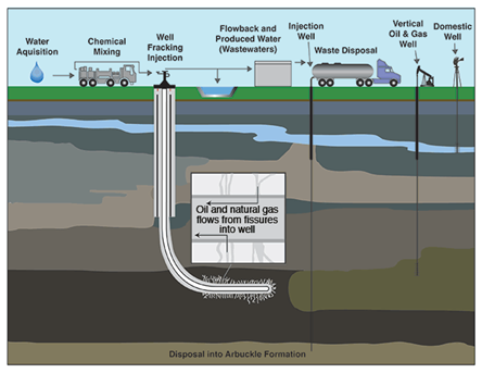 Fross, Dustin, and Shane Lyle. Hydraulic Fracturing Water Cycle from Acquisition to Treatment and Disposal (modified from EPA, 2012). Digital image. Guidelines for Voluntary Baseline Groundwater Quality Sampling in the Vicinity of Hydraulic Fracturing Operations. Kansas Geological Survey, Public Information Circular (PIC) 34, 19 Apr. 2013. Web. 15 May 2017. http://www.kgs.ku.edu/Publications/PIC/pic34.html.