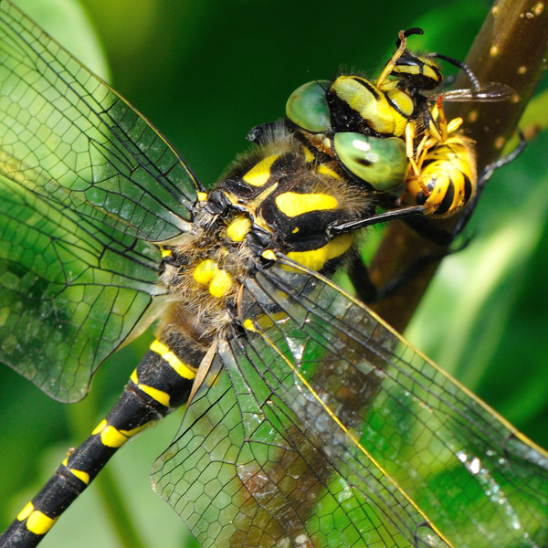 Dragonfly eating a bee.