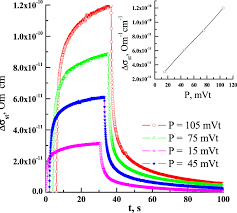 - Calculate the corrected photoconductivity at a given lamp intensity, generally 1 mW / cm2, calculate the approximate material gap.