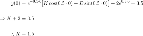 Finally, we apply the initial conditions to equation (10) to find the particular solution to the differential equation (8)...