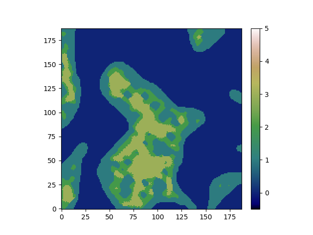 I recently read a paper on society development in the old world. I wanted to create a more rigorous version of the model since the modelling assumptions do not define a unique model. In addition, I wanted to change some of the governing equations to more realistic ones. It seemed worthwile to apply this model to computer generated maps. So I developed a fun model to generate landscapes. So here we are!