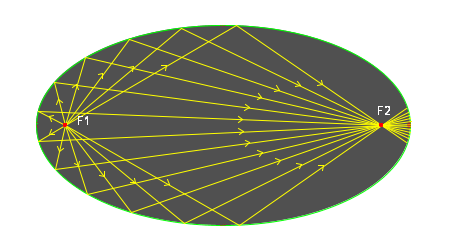 So any light (ray) coming from one of the focal points of ellipse goes to another focal point when hit by any point on the ellipse. We can directly apply this fact to make an elliptical mirror,