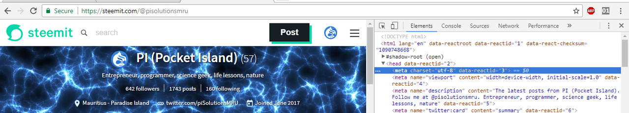 This is achieved by a special header information that need to be added in the website to enable the browser to know how to process. For Steemit, the encoding used is UTF-8, which supports Unicode, and is writtenin the header of the HTML as charset attribute as shown below (highlighted in blue on the right-hand side):