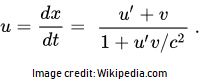 Column H - Composition Of Velocities (m/s): This is the heart of the Special Relativity aspect of the spreadsheet. If you go to the Wikipedia page on Special Relativity they have conveniently provided this equation for us: