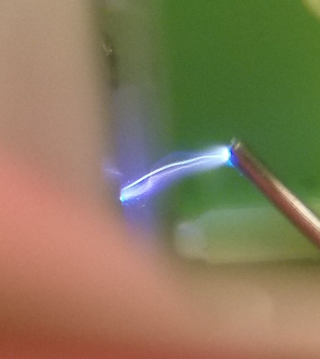 An example of a high voltage plasma arc, from one of my previous steemit posts. This one is a produced by a piezoelectric crystal from a lighter. You know, on that note, I bet you could produce radio waves with this too ... maybe I'll try that someday.