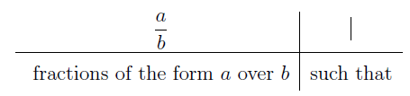 You might not be familiar with the bar after the fraction but it’s actually simple. We will digress a little bit to introduce set builders. It reads as,