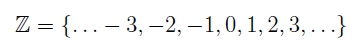 integer numbers: ...,-4,-3,-2,-1,0,1,2,3,4,...