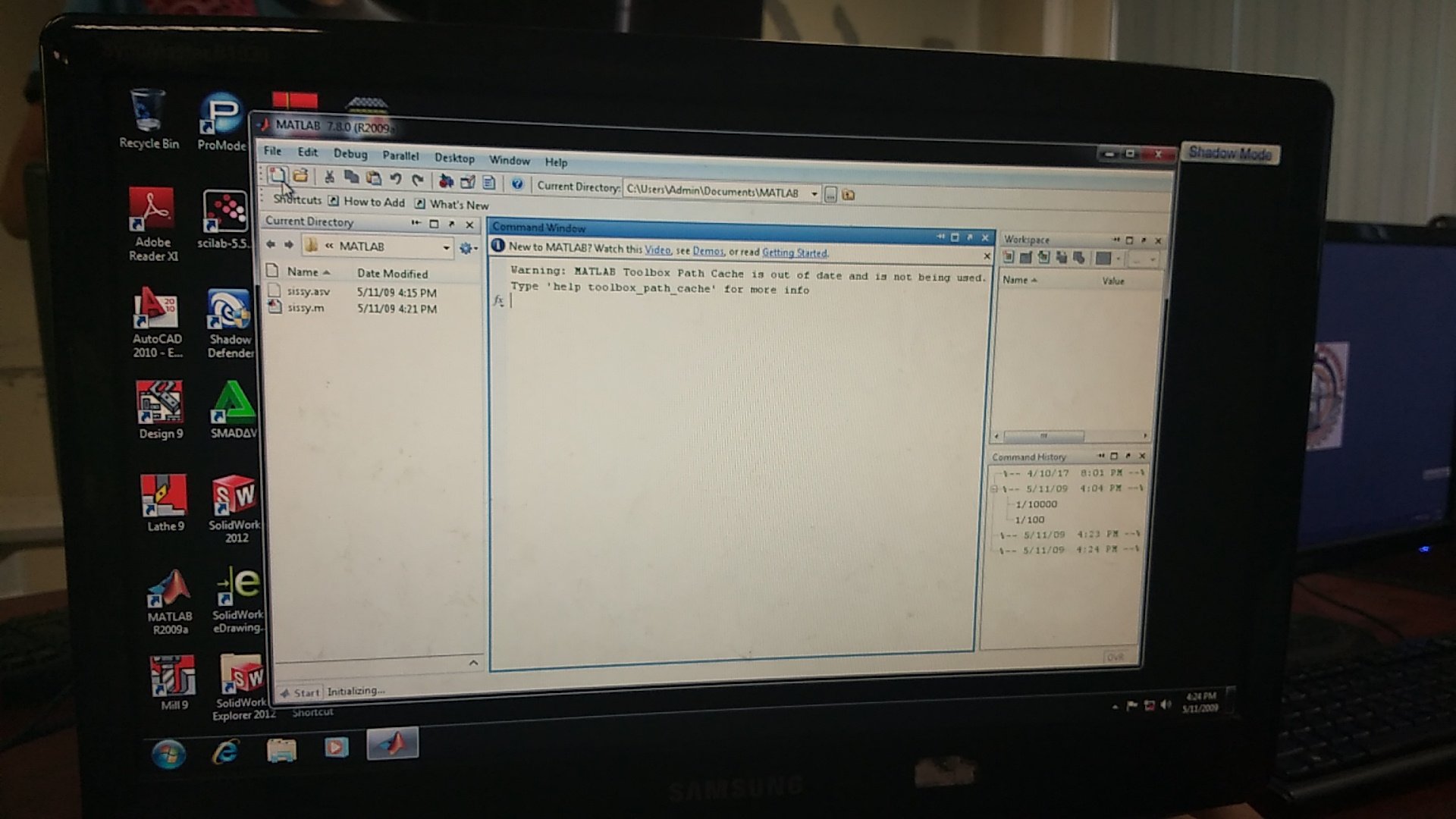 The picture below shows what it looks like after clicking the MATLAB ICON. You can see the tools, Directory, Command Window, Command History and even the Workplace Sheet.