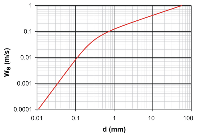 Graph showing terminal or settling velocity of sand grain in water from Wikimedia under CCO license