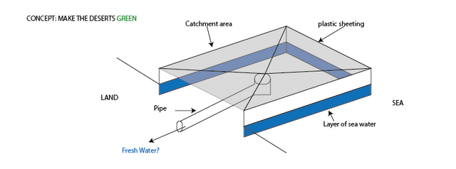 I was about 7 or 8 and was wondering at what scale this idea could work at to produce fresh water to make the deserts green (environmental issues were big when I was a kid 30 years ago, lucky we solved them all...). So, I thought about if the 'hole' was a large catchment area by the sea that allowed a thin layer of salt water in and had a large black plastic sheet as the membrane for the condensation.