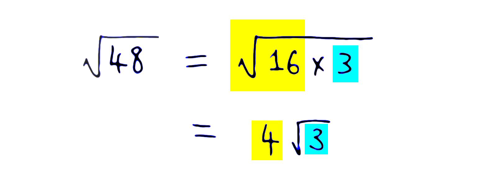 Factorise 48 as 16 times 3. The square root of 16 is 4, which is nice. The square root of 3 cannot be simplified. So we leave our answer as .