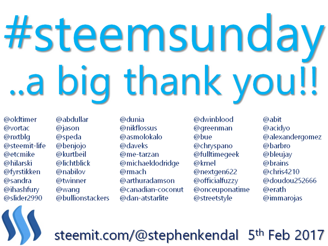 Once again continuing on with the theme of SteemSunday, a follow up to Facebook's FollowFriday theme, I would like to once again say a MASSIVE Steemit THANK YOU to each and every one of you for your votes this week.