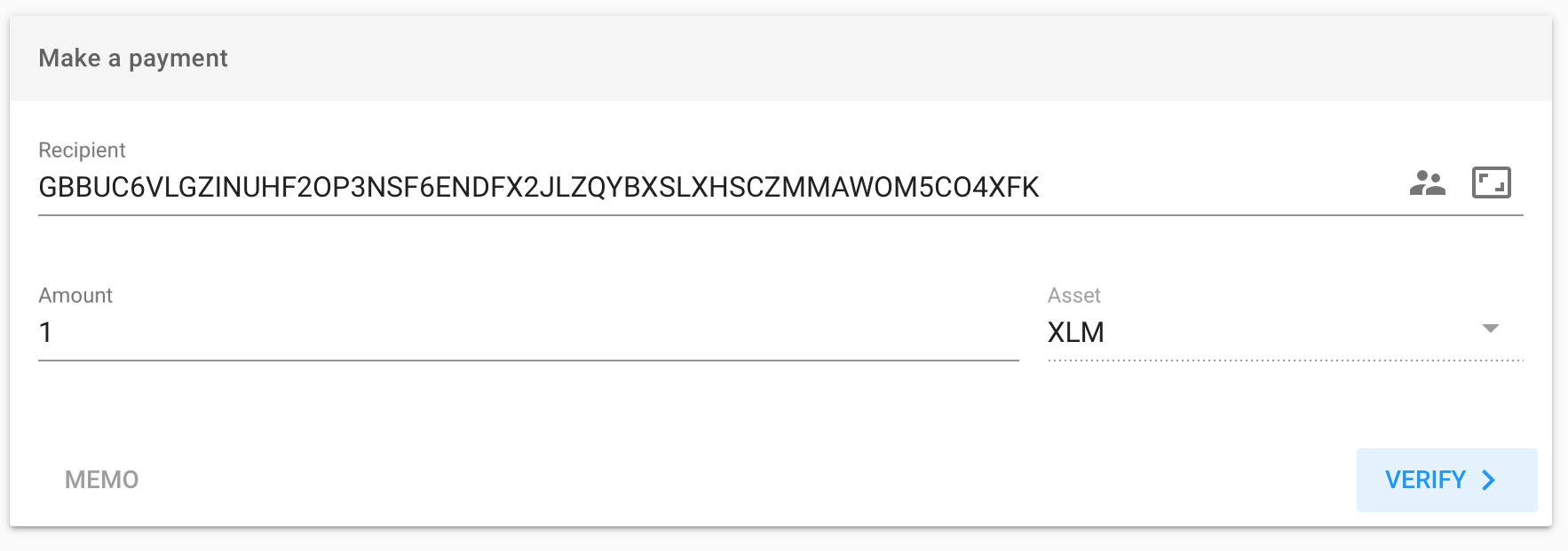 - To send a payment in XLM- click on Send from the left menu. And fill out the details below: