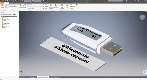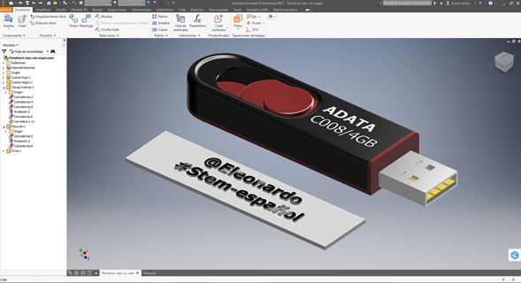 Ya en su forma final se procede a agregar el cuerpo interno del pendriver