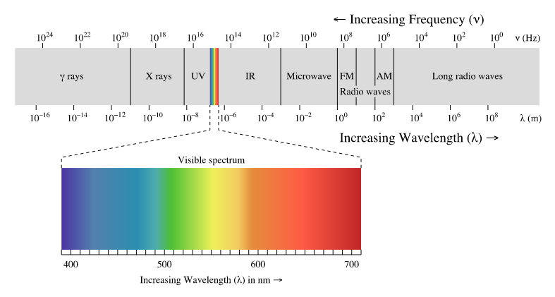 EM waves within the visible range. Image source: Wikimedia. Creative Commons Attribution-Share Alike 3.0 Unported license.