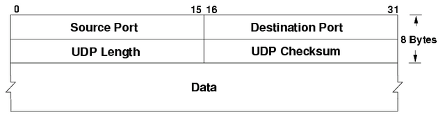 Hence, UDP is mainly deployed in voice transmission, in conjunction with the Real-time Transport Protocol (RTP) which is built on UDP to make the transmission tolerate more loss. The header of UDP is shown below.